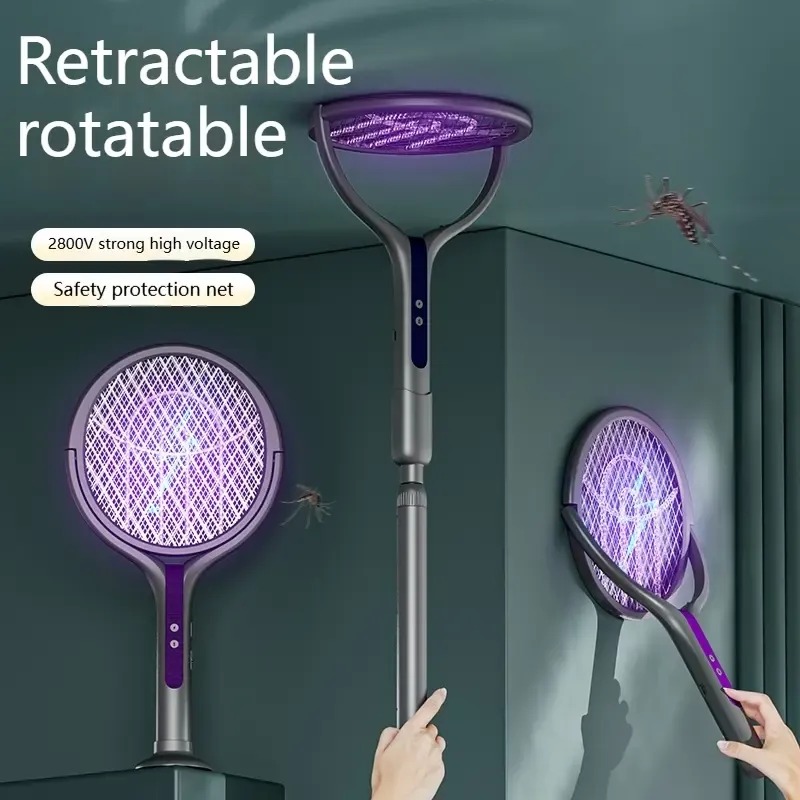 Foldable Telescopic Electric Fly Swatter 90 Degree Rotatable Mosquito Racket with Purple Light