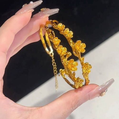 Lucky Gold Plum Blossom Bracelet | Double Layer Adjustable Bangle for Gifting & Daily Wear