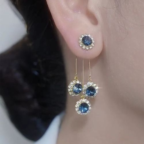 New Style Double-Sided Wear Full-Diamond Tassel Earrings, 2-Way Wear Ear Accessories, Blue Silver Needle Versatile Stud Earrings