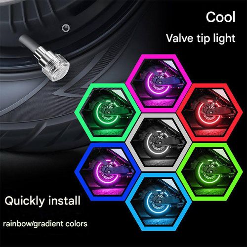 LED Tire Valve Lights 7 Color Motion Activated Waterproof Wheel Lights for Electric Bikes Motorcycles Scooters 2 Pack