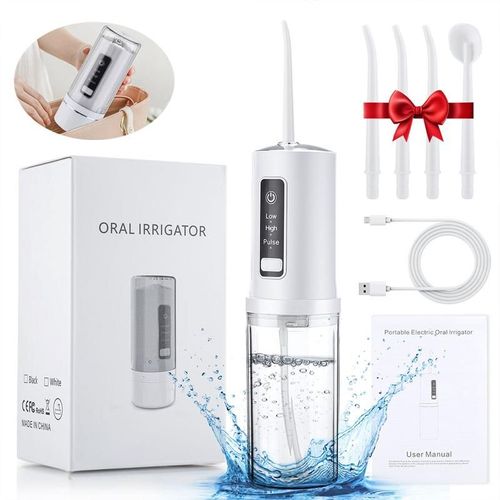 Portable Rechargeable Electric Oral Irrigator 3 Modes 4 Nozzles IPX7 Waterproof for Home and Travel