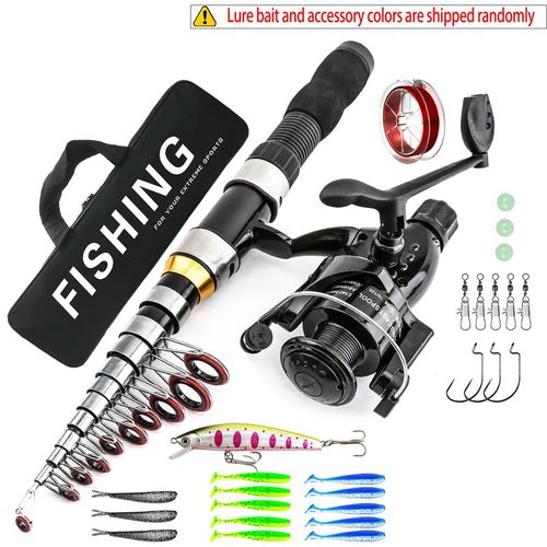 Portable Telescopic Fishing Rod and Reel Combo Full Kit with Lures Hooks and Carry Bag